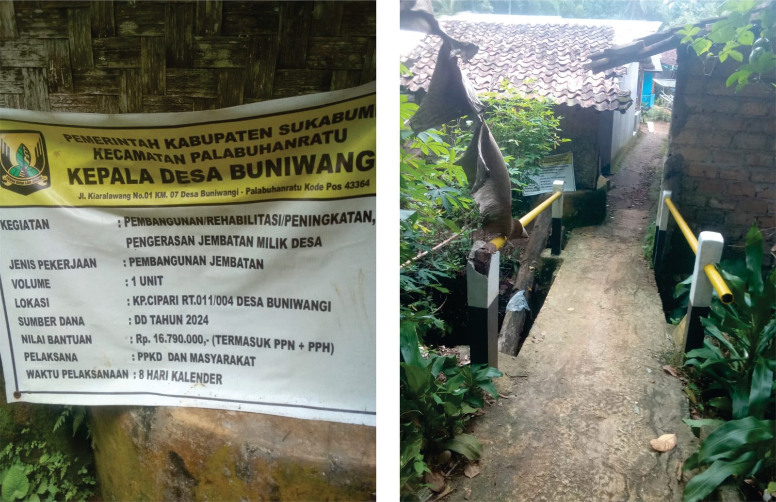 Di proyek lain, yaitu pembangunan rehabilitasi dan peningkatan pengerasan jembatan milik desa di Kampung Cipari RT 011/004, Desa Buniwangi, ditemukan indikasi penggunaan anggaran yang tidak sesuai dengan RAB. Berdasarkan dokumen yang ada, anggaran yang disiapkan untuk proyek ini sebesar Rp 16.790.000, termasuk PPN dan PPH, dengan pelaksana PPKD dan masyarakat serta waktu pelaksanaan yang ditetapkan selama 8 hari kalender.